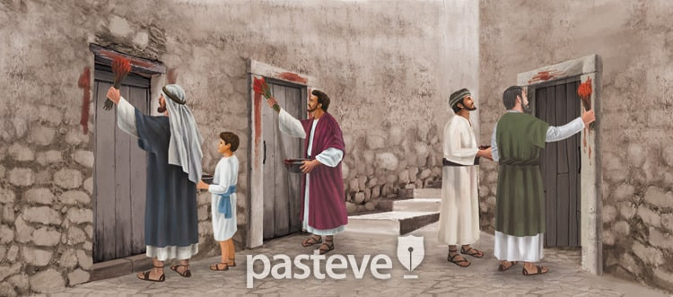 너희 어린양은 흠 없고 일년 된 수컷으로 하되 양이나 염소 중에서 취하고 이달 십사일까지 간직하였다가 해 질 때에... 그 양을 잡고 그 피로 양을 먹을 집 문 좌우 설주와 인방에 바르고...이것이 여호와의 유월절이니라...내가 피를 볼때에 너희를 넘어가리니 재앙이 너희에게 내려 멸하지 아니하리라 너희는 이 날을 기념하여 여호와의 절기를 삼아 영원한 규례로 대대에 지킬지니라(출애굽기 12:5~14)