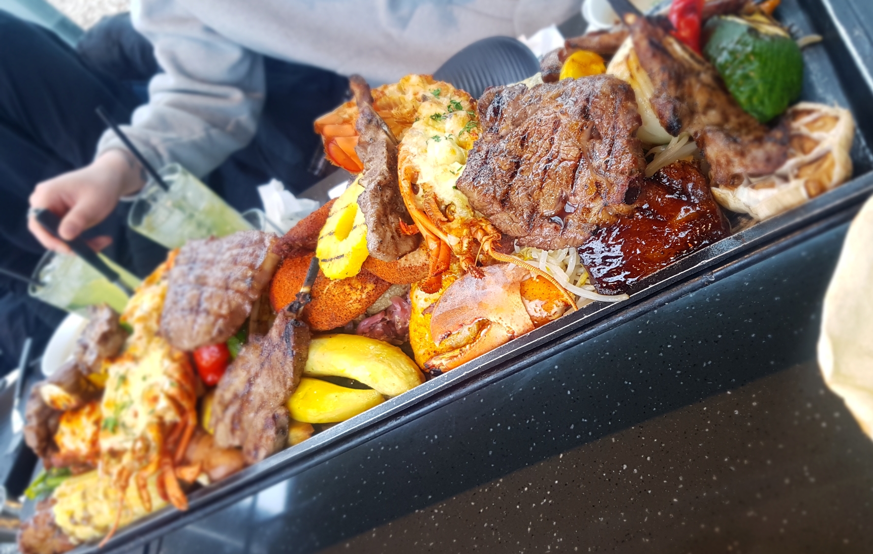 (양고기,소고기,통삼겹,스테이크,닭고기,소시지,랍스타,대게,대왕주꾸미,파인애플,바나나,옥수수,감자,가지,구운마늘,버섯,고구마,파프리카,양배추,부추,숙주나물 등등)
