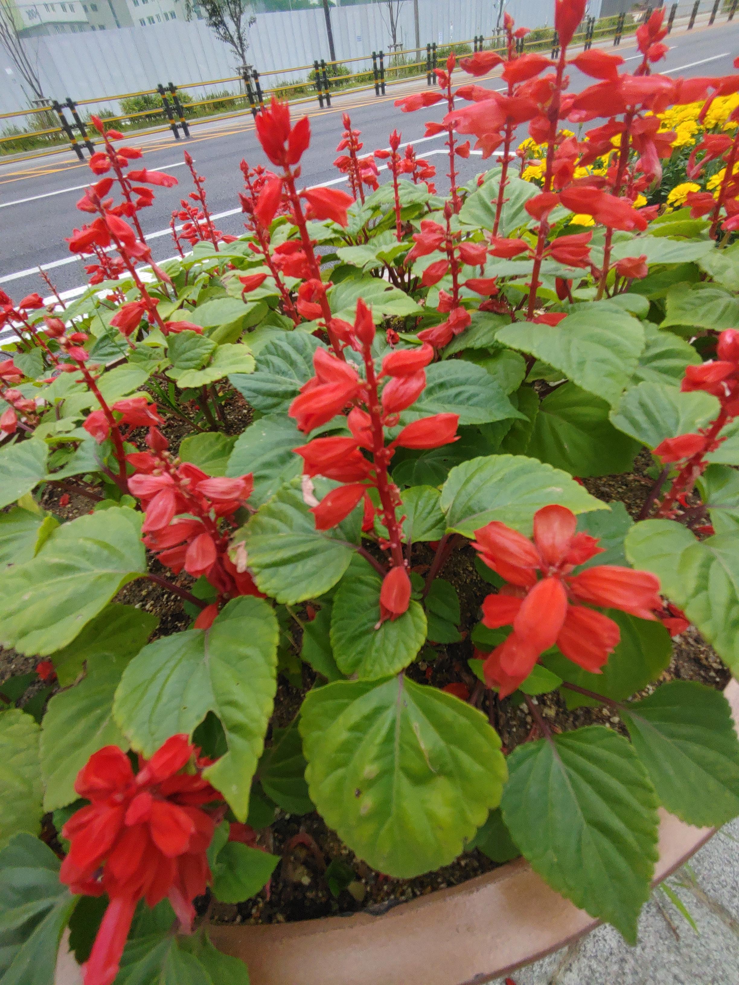 퇴근 길에 친구 기다리는데 빨간색 샐비어- 사루비아꽃이 넘 예뻐서 찍어봤어요~ ㅋ