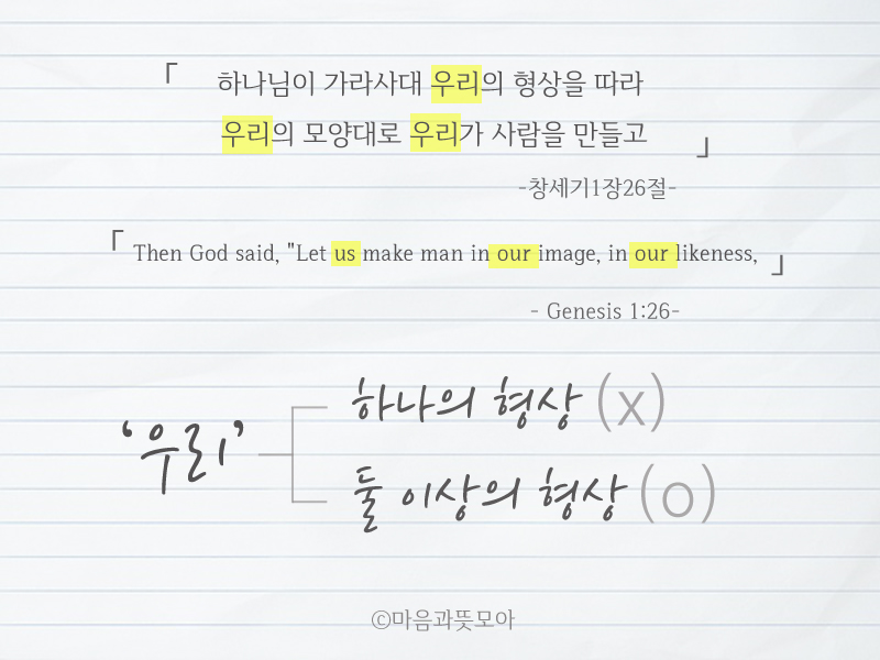 나로 말미암지않고는 ; 창세기1장26절 God said, '...우리가 사람을 만들고',어머니하나님
