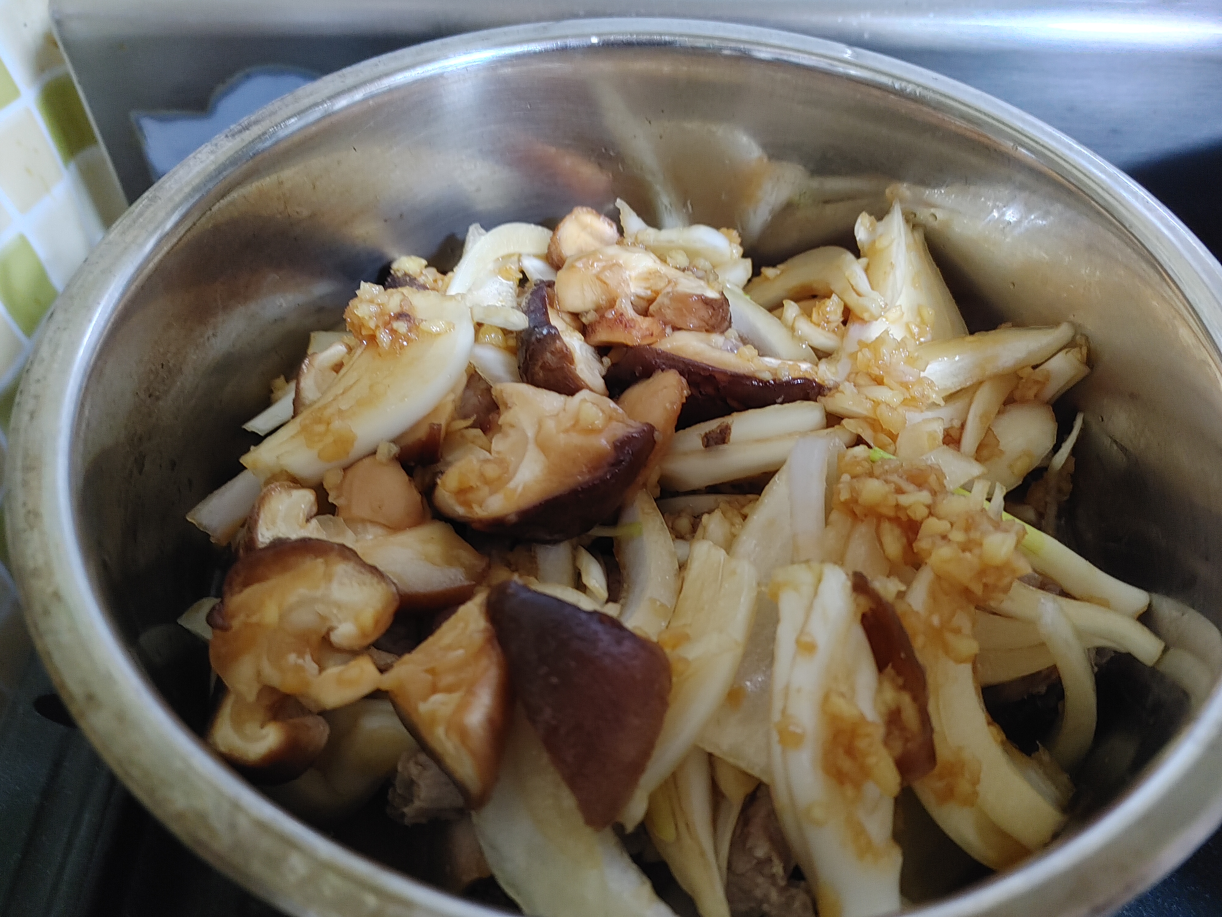 웍에 그냥 할까 하다 뚜껑이 없어 작은 냄비에 한게 실수였어요 ㅠ