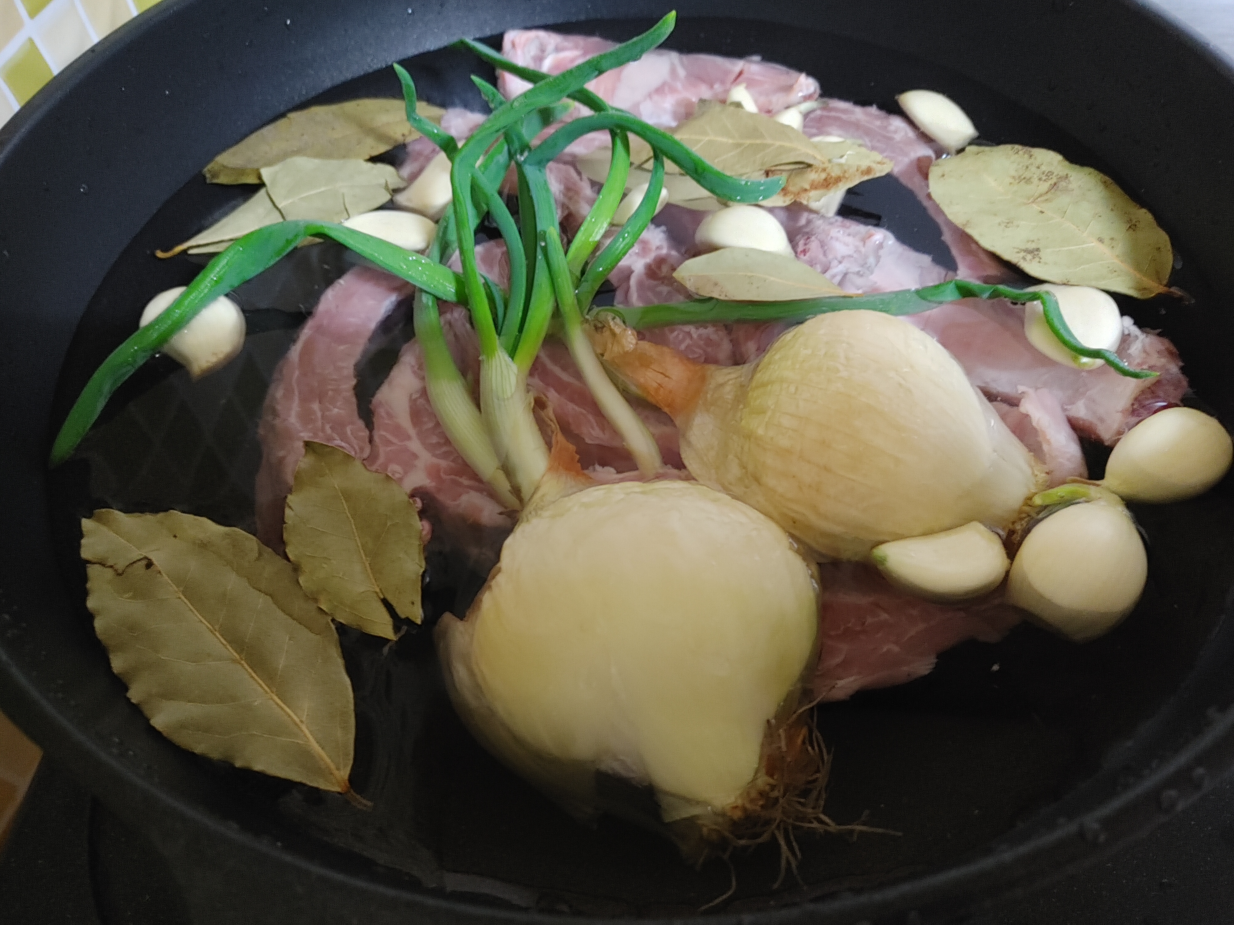 고기를 한번 삶아줘야 한데서 웍에다 20분정도 삶았어요~