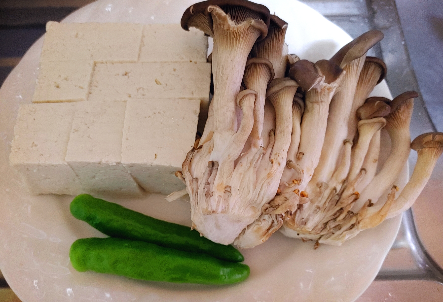 재료 : 두부, 느타리버섯, 파, 만능간장(적당히 ㅋ), 전분물(1:1)