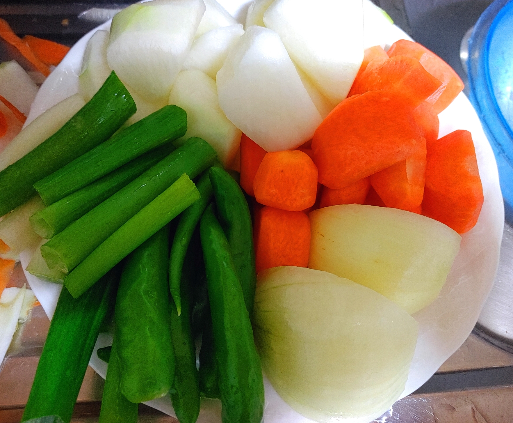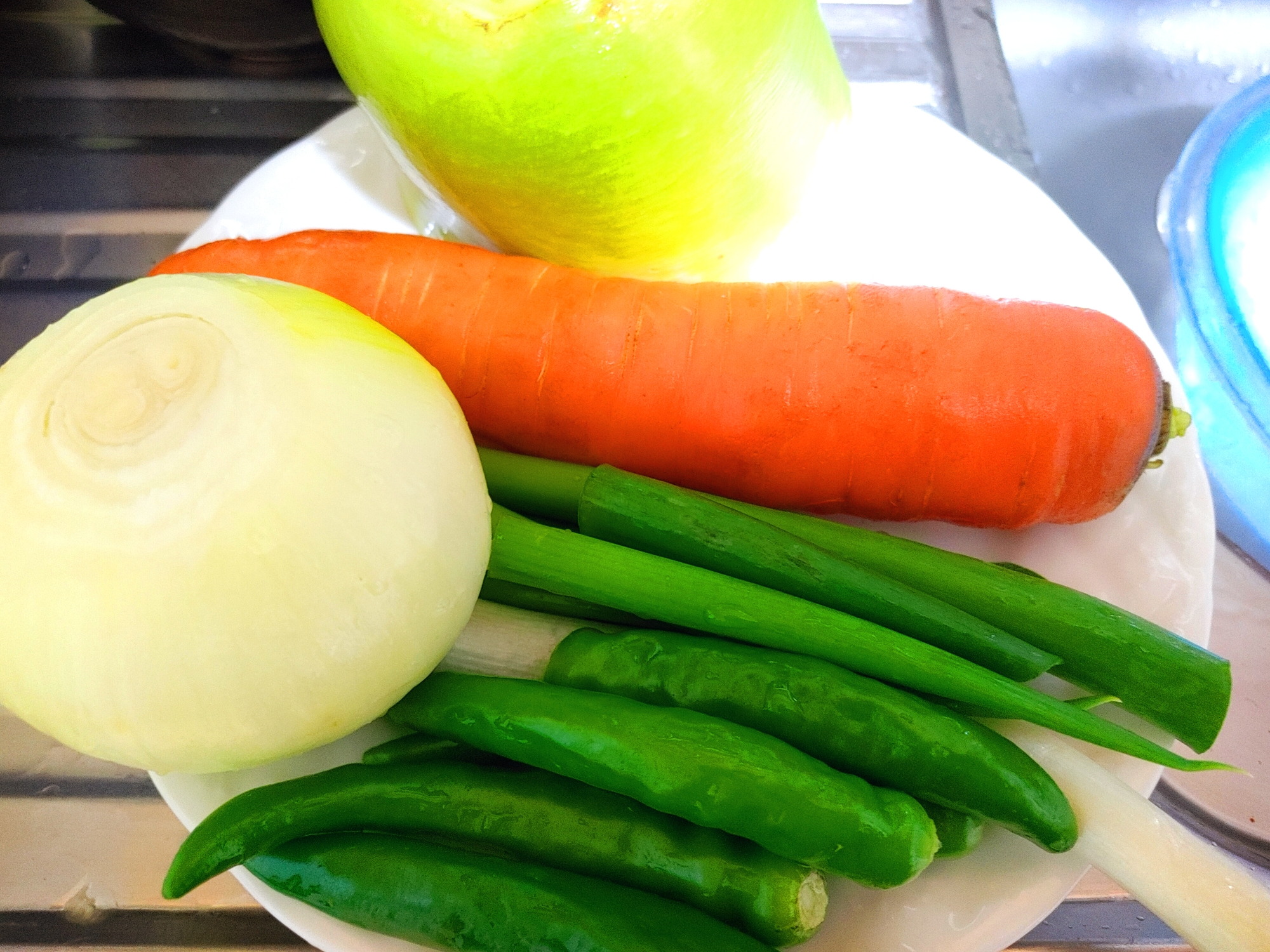부재료 : 무,당근,대파,고추(청양고추나 꽈리고추),버섯(새송이나 표고버섯)