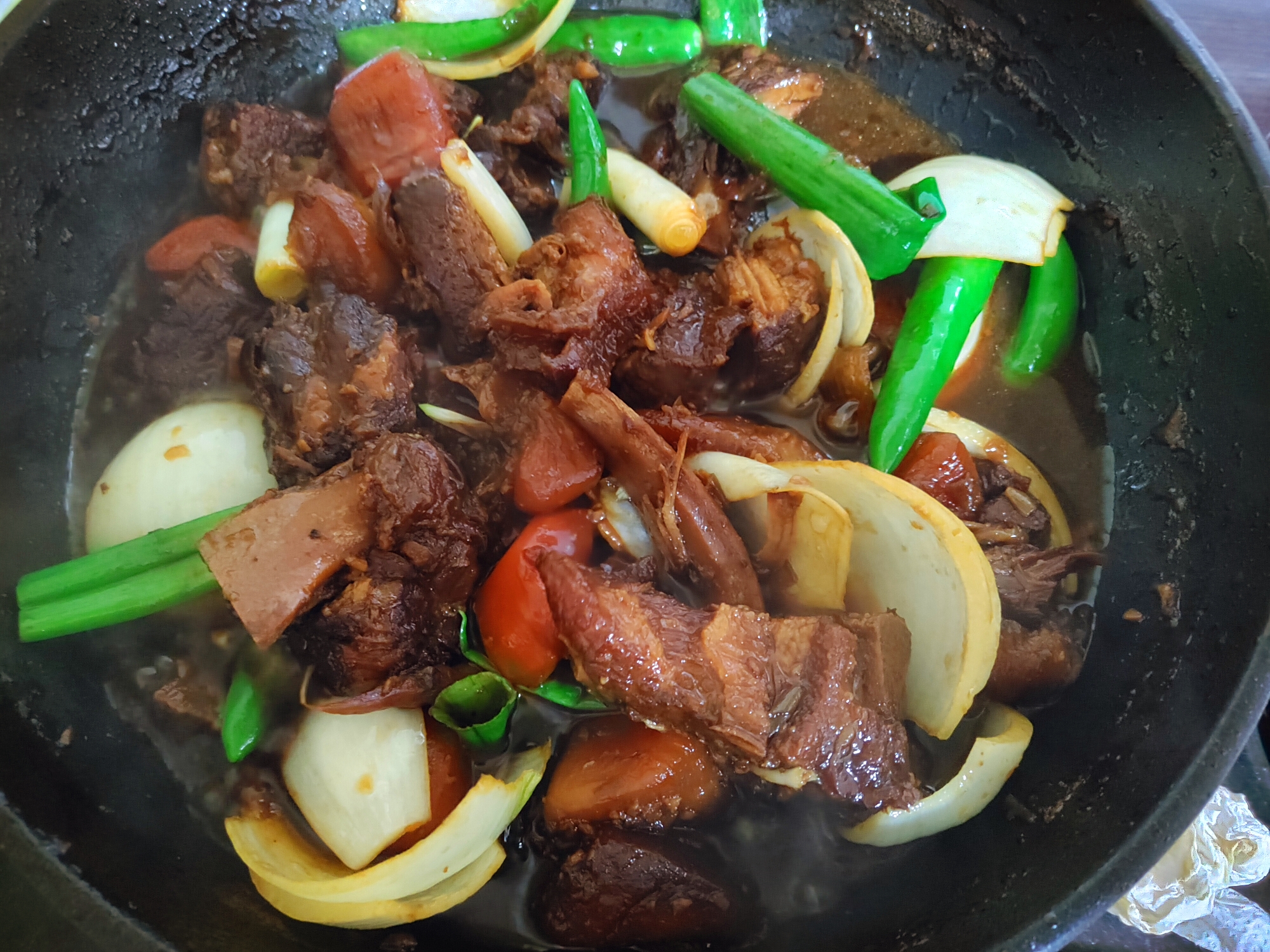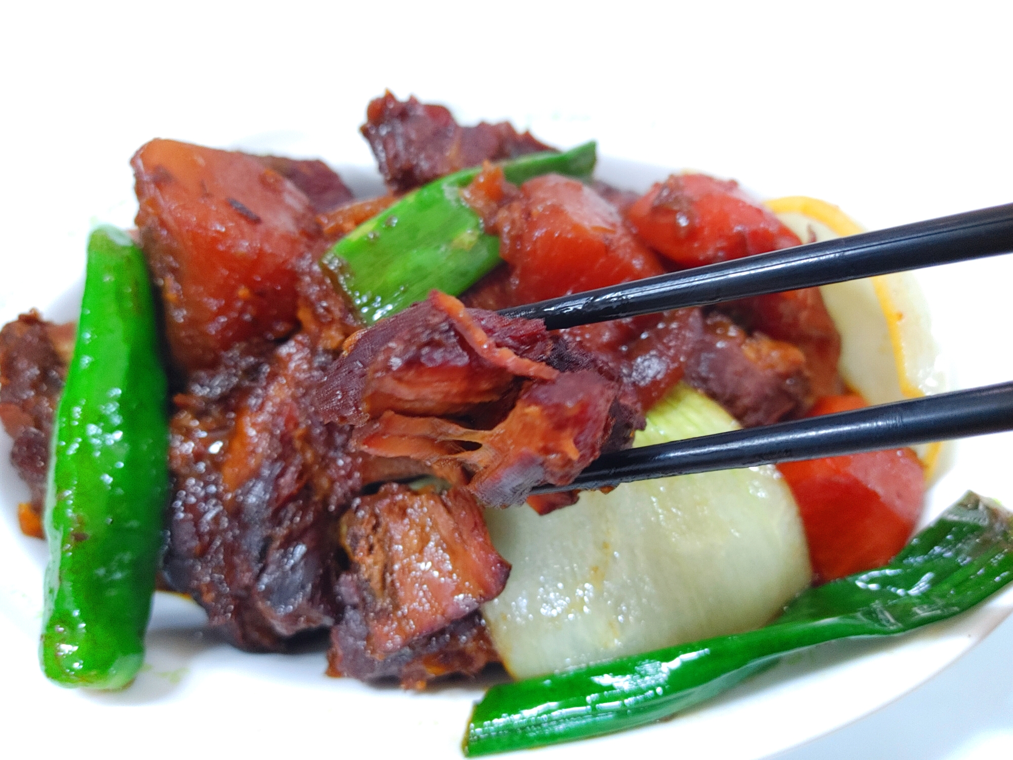 고추랑 파는 비주얼을 위해서 거의 익히지 않고 예열로 익히면 되요;; ㅋ 그랬더니 더 맛있어보이긴 하네요~~ 돼지갈비색이 넘 진하긴 하죠;; 간장물이 아주 진하게 배서 장조림 같았어요 ㅋㅋ