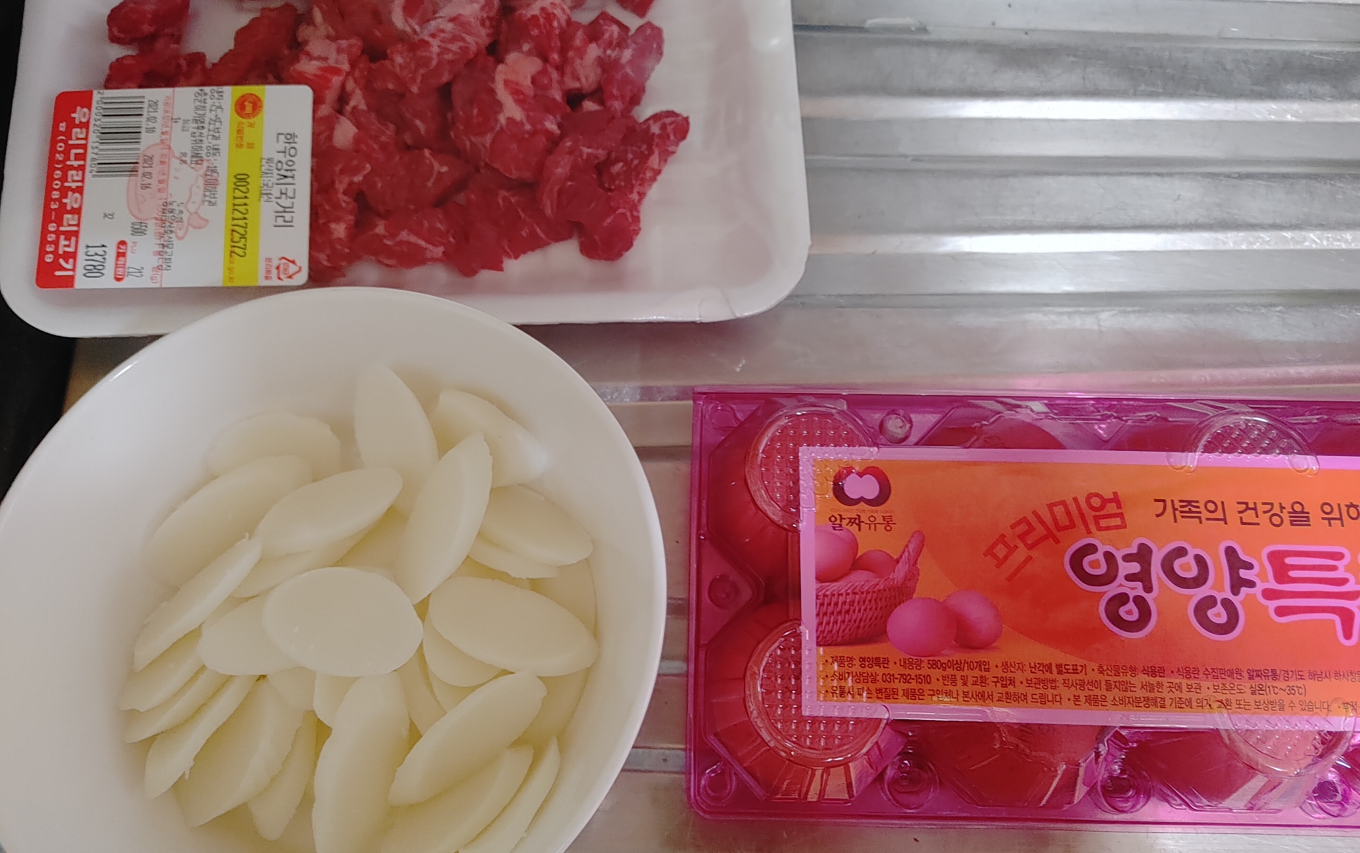 떡국 재료 : 떡국떡, 한우양지, 계란 2알