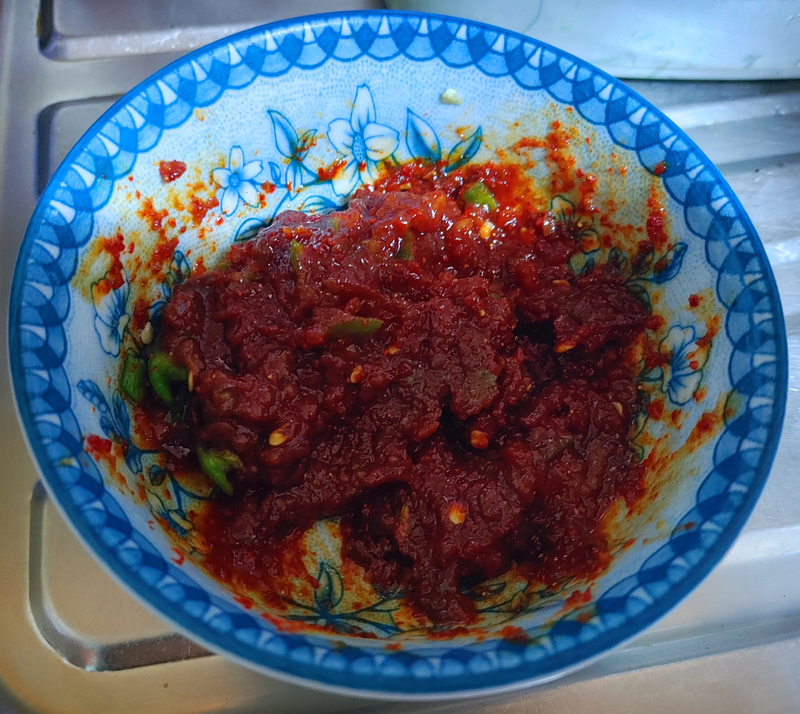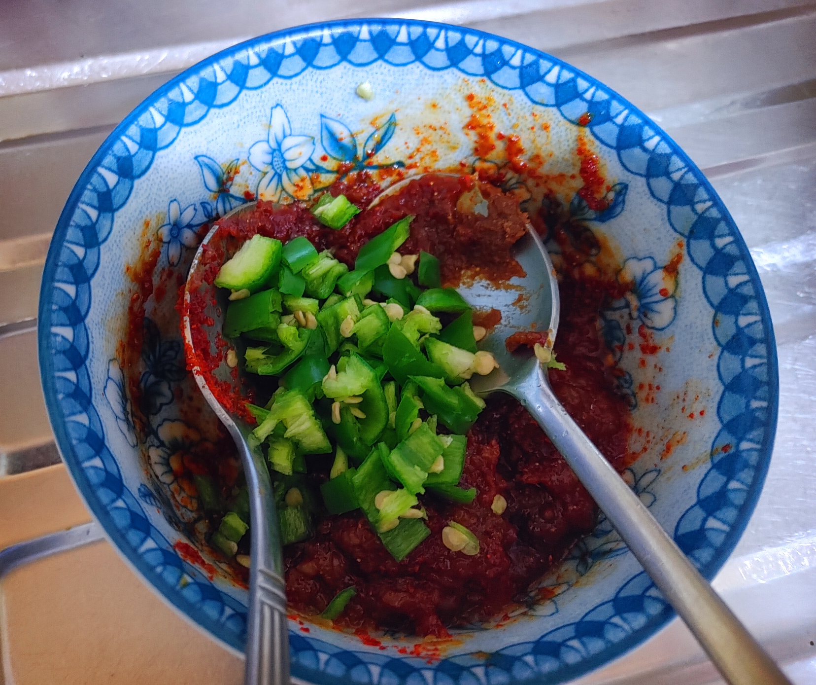 양념재료 : 된장, 고춧가루, 다진마늘, 매실액,다진고추