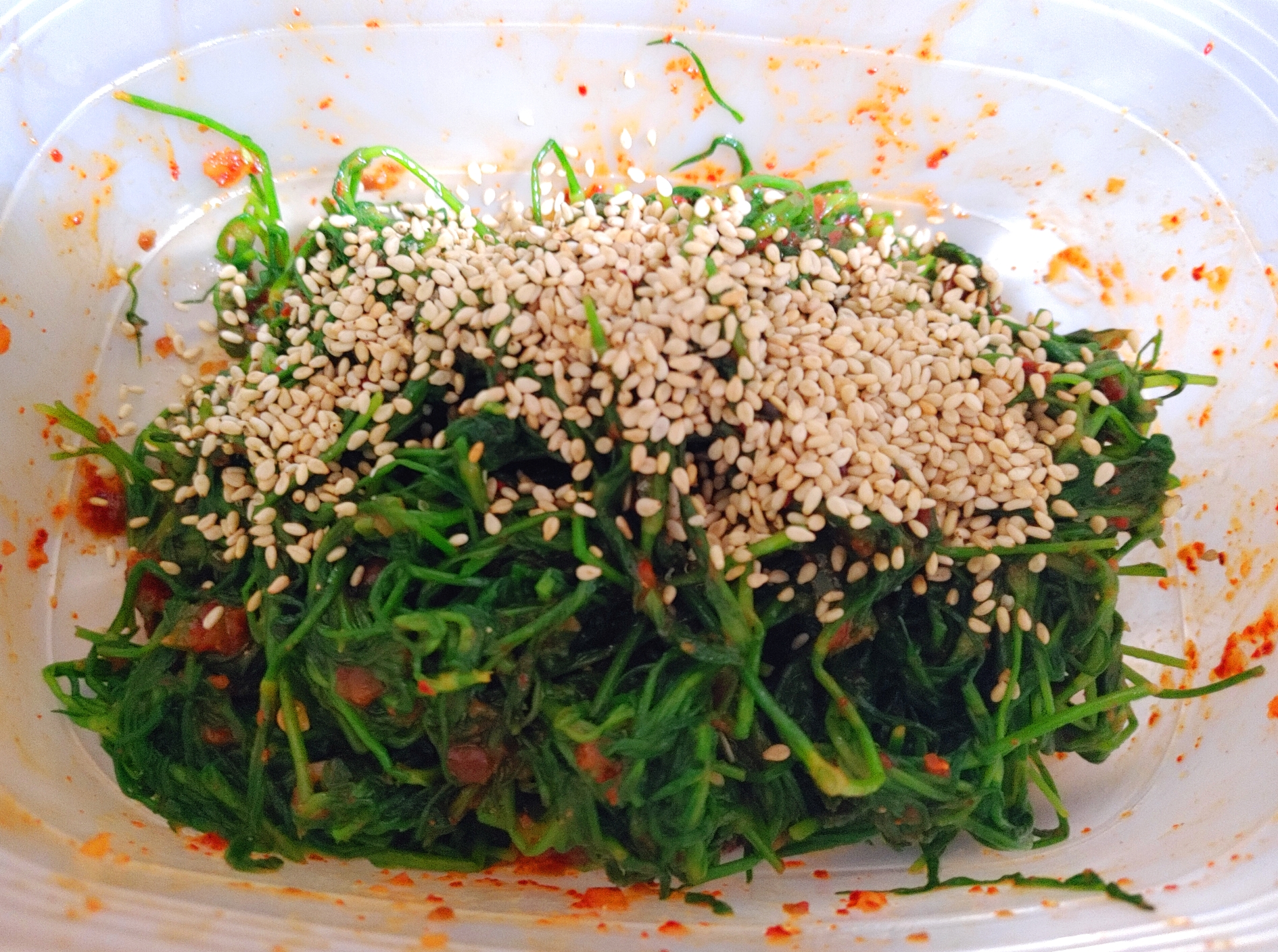 마지막으로 통깨를 뿌려주면 끝! 깨를 듬뿍 뿌리면 식감이 더 좋아요~^^