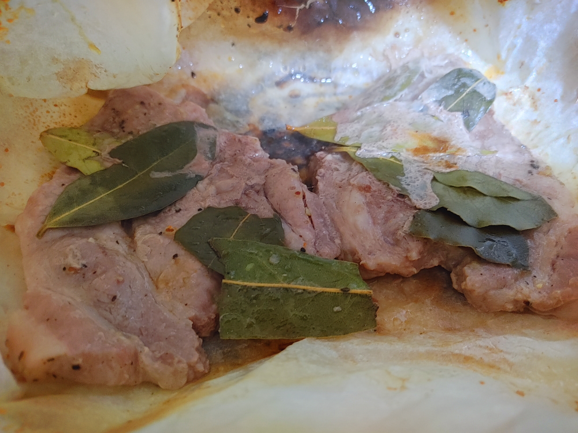 잡내 제거 위해 월계수잎 올려주세요. 대파를 올려도 좋아요~