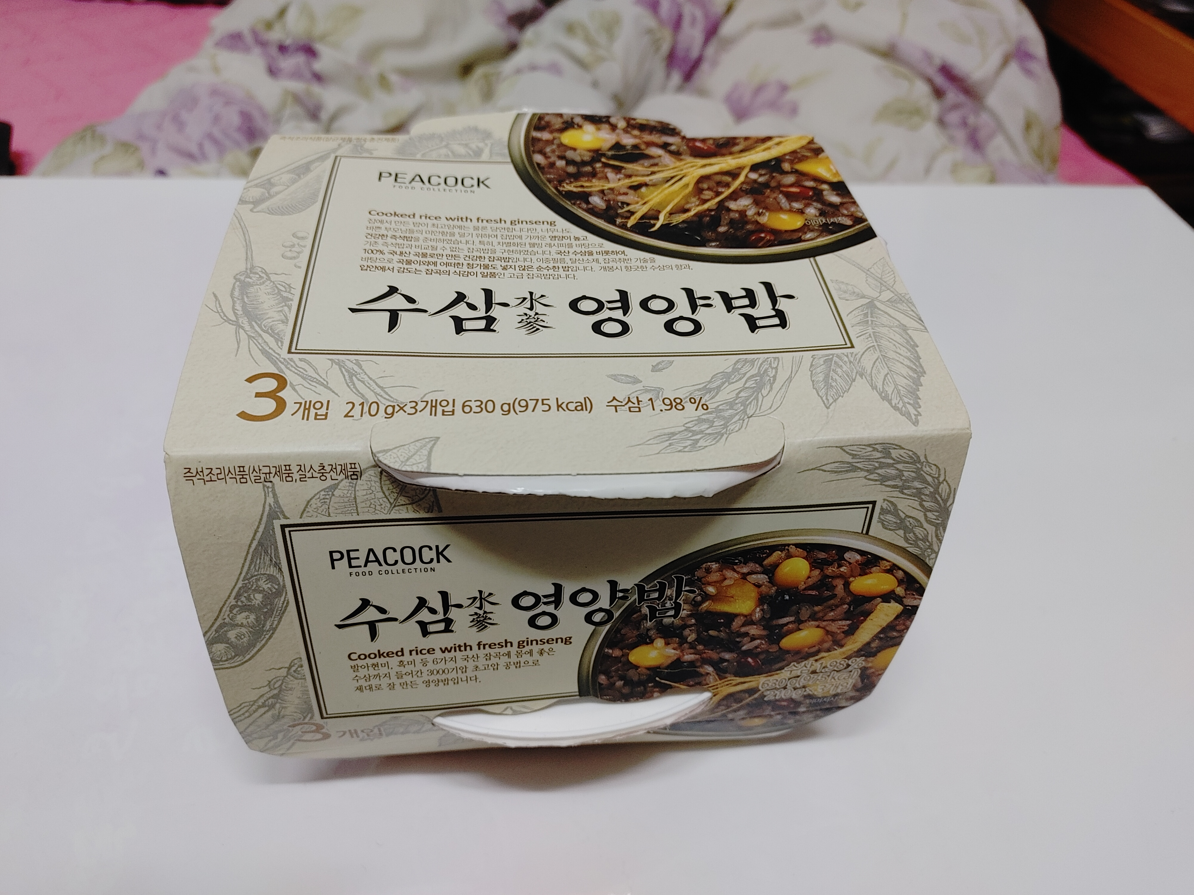 맵쌀,찰현미,발아현미,흑미,서리태,청태,팥, 밤, 은행, 수삼등등 많이도 들어가서 영양만점 건강밥이네요~ㅋ즉석밥 같지않은 비주얼에 가격도 괜찮고 가성비 괜찮은거 같아요~~^^