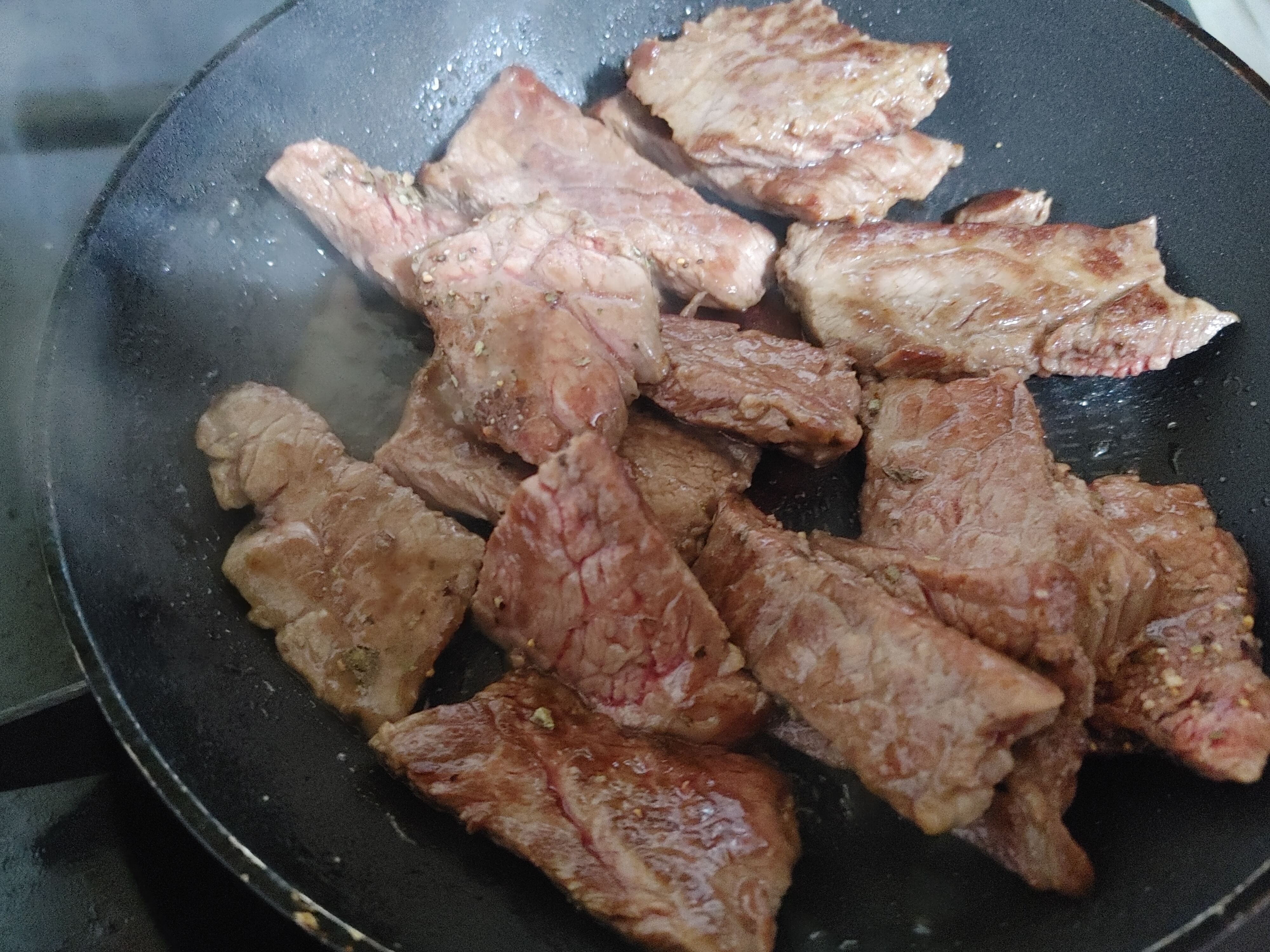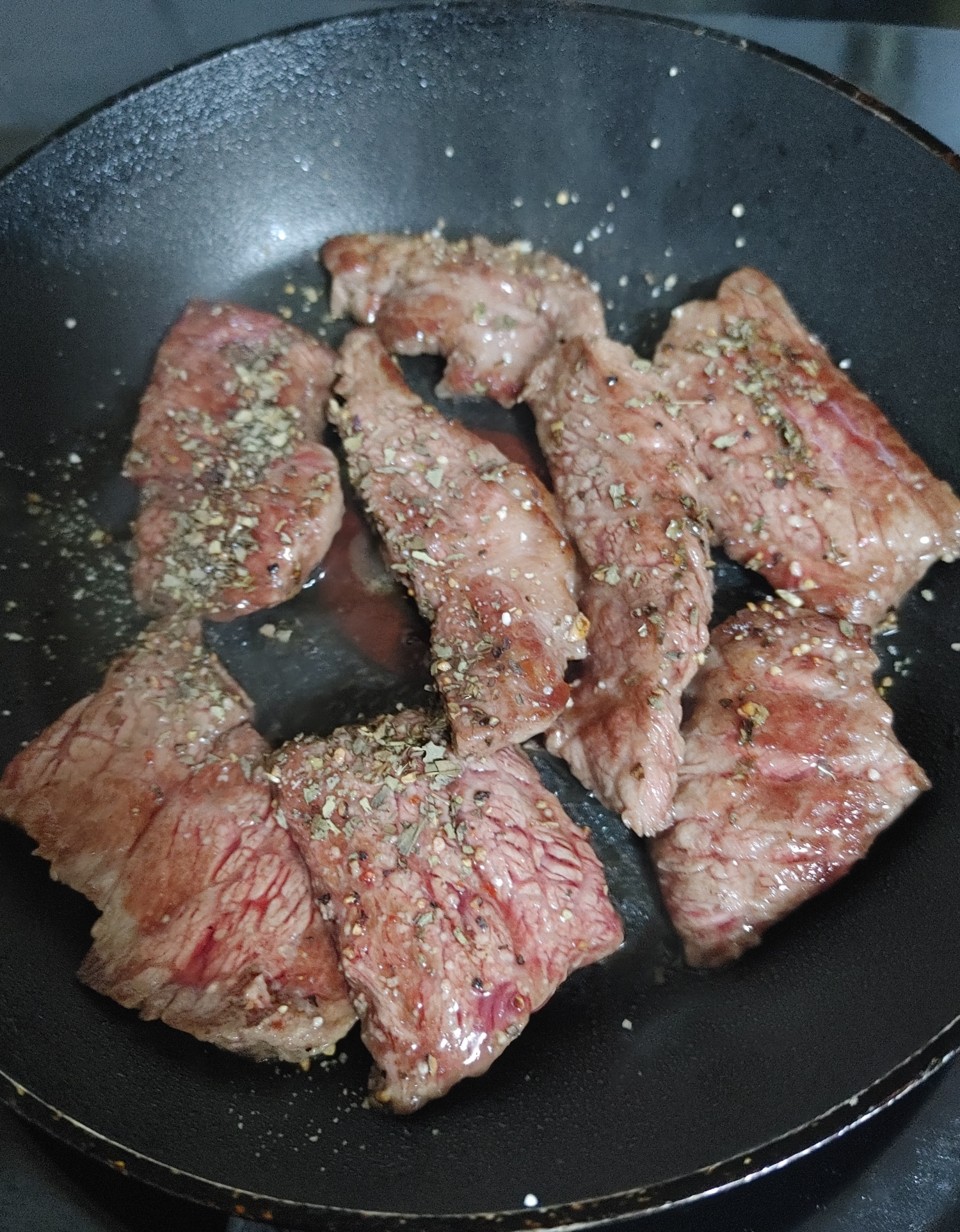 구운 살치살위에 허브쏠트를 솔솔 뿌리고 로즈마리도 뿌려서