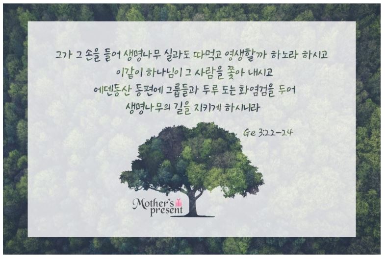 에덴동산의 역사를 생각해 보겠습니다. 생명과를 다시 먹을 수 있도록 허락해 주실 수 있는 분은 오직 하나님뿐입니다.