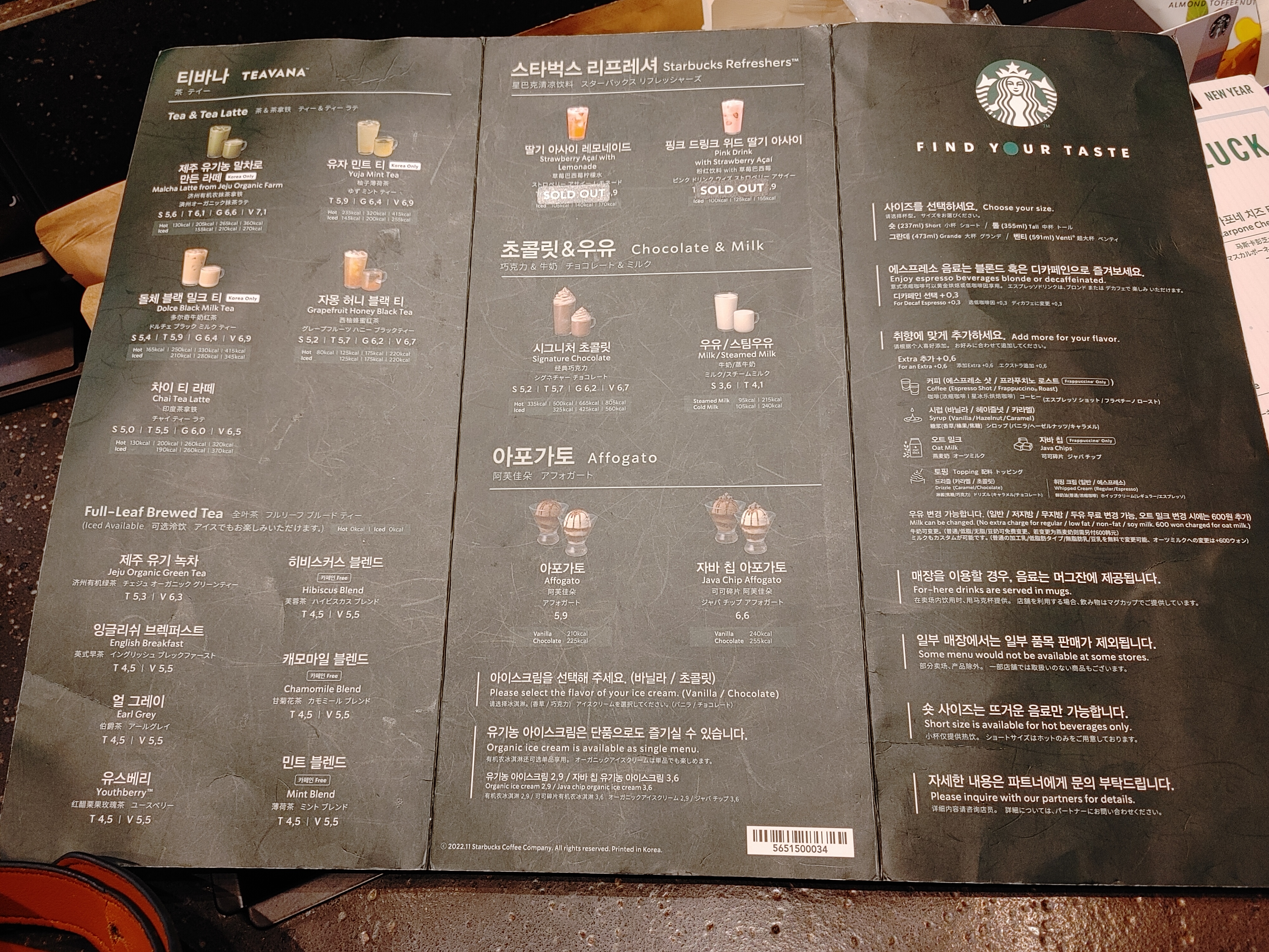 친구는 카페라떼, 전 튜메릭 라떼를 주문했어요~ 몸에 좋은 강황가루가 들어가서 몸을 따뜻하게 북돋아주는 담백하고 이국적인 라떼에요~~ 전 스타벅스 커피는 항상 진해서 배가 안픈데 요 튜메릭라떼도 쫌 진해서 속이 안좋더라구요ㅠ